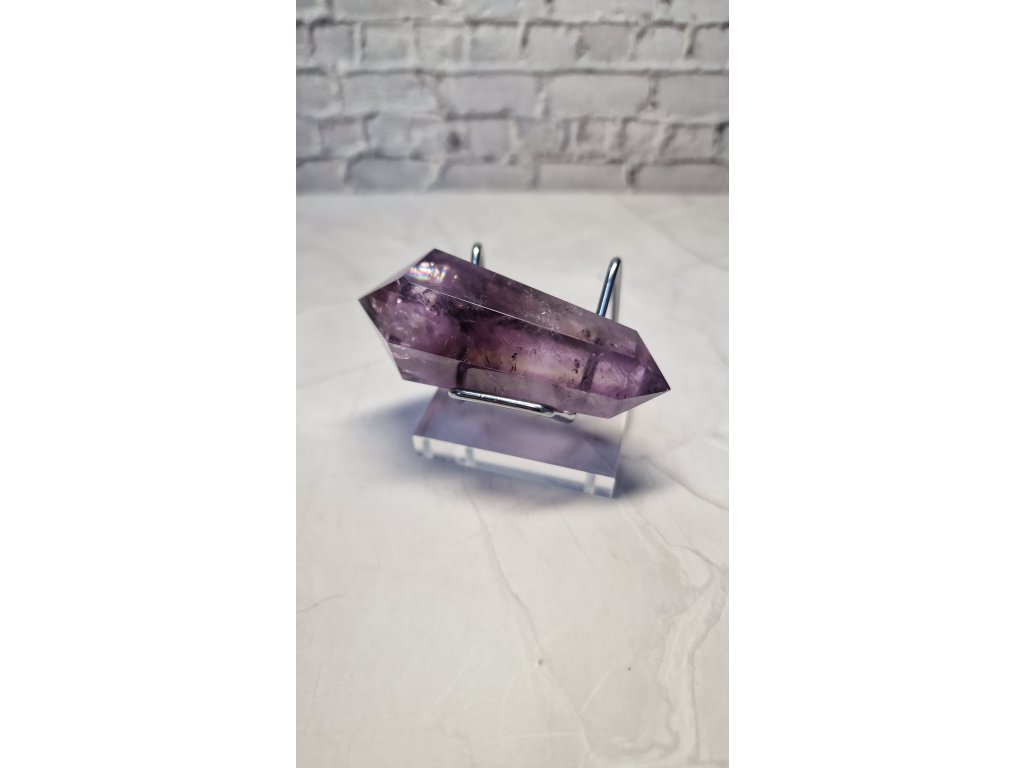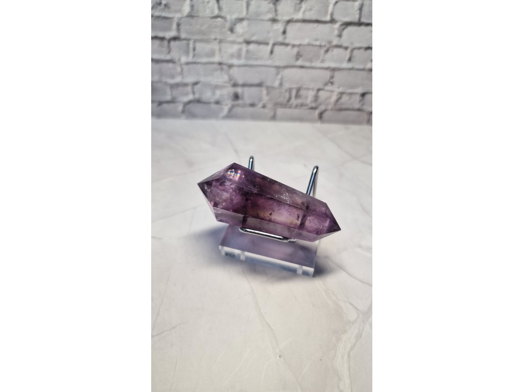 Ametrín obojstranný špic s jemným dúhovým odleskom pri špičke, váha: 52 g, dĺžka 7 cm, šírka 3 cm. Krajina pôvodu Brazília. Kupujete tento ks.