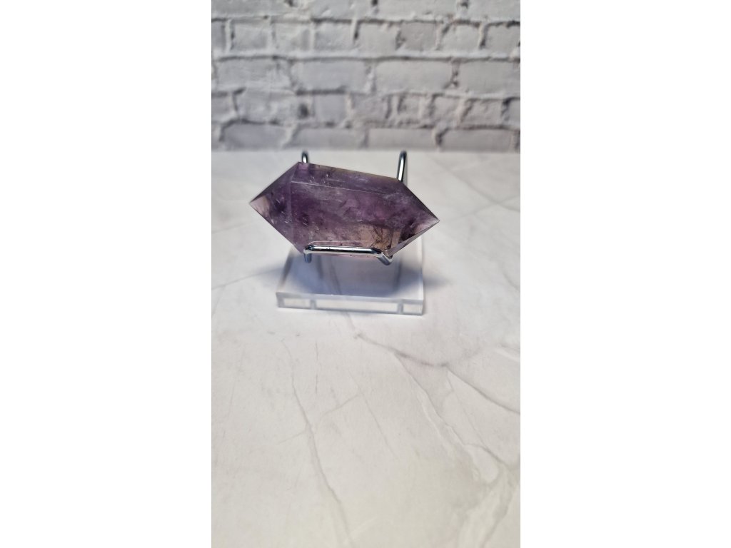 Ametrín obojstranný špic s jemným dúhovým odleskom pri špičke, váha: 52 g, dĺžka 7 cm, šírka 3 cm. Krajina pôvodu Brazília. Kupujete tento ks.