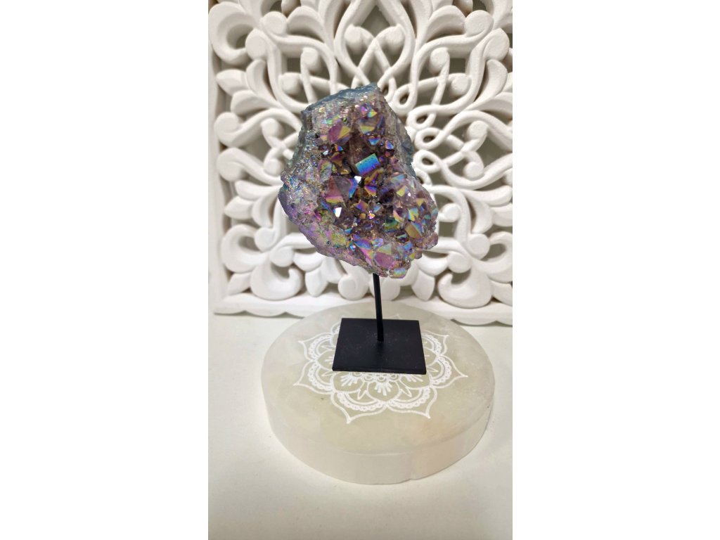 Aqua Aura - drúzička na stojane. Krištálová dúzička potiahnutá 7 druhmi kovov. Veľkosť 7x3 cm. Výšks 10,5 cm. Váha cca 110g. Kupujete priamo tento ks. Krajina pôvodu...