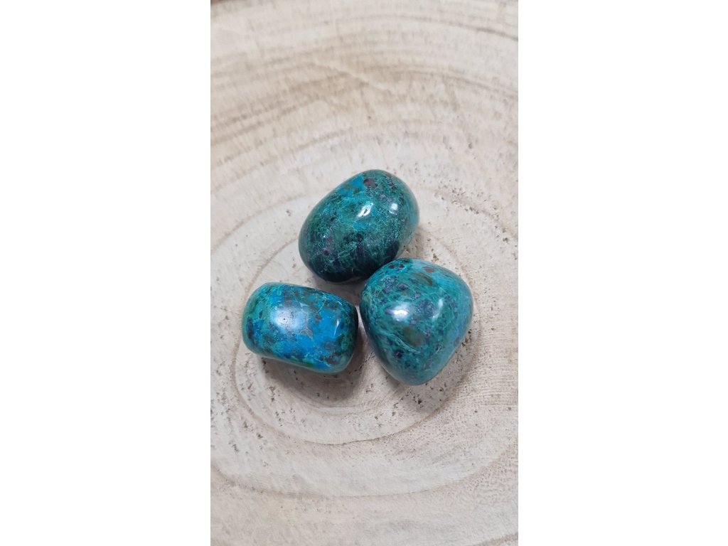 Chryzokol tromlovaný, váha cca 40 g. Veľkosť L, dĺžka cca 3 cm. Vyberieme za Vás.