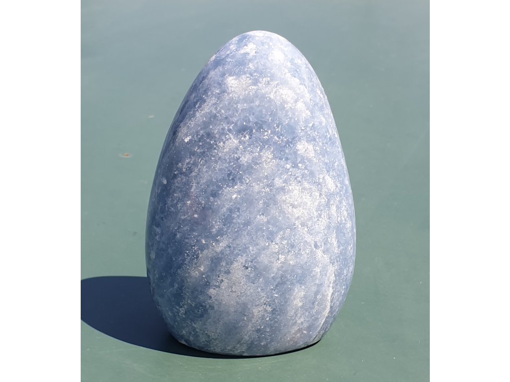Kalcit modrý free form, hmotnosť 360g, výška 9,5cm, šírka 5cm. Krajina pôvodu Madagaskar. Kupujete priamo tento ks.
