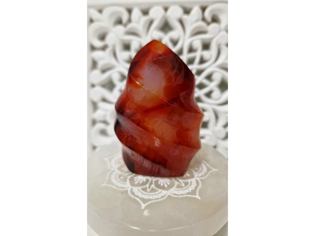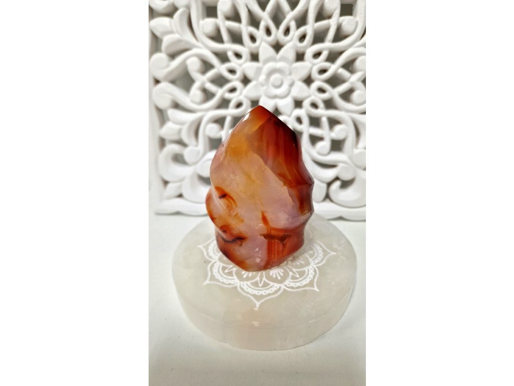 Karneol plameň, váha 290g, výška 8 cm x 5,5cm. Krajina pôvodu Madagaskar. Kupujete priamo tento ks.
