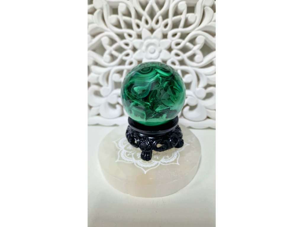 Malachitová guľa, bez podstavca, váha 356 g, priemer 5,5 cm. Krajina pôvodu Kongo. Kupujete priamo tento ks.
