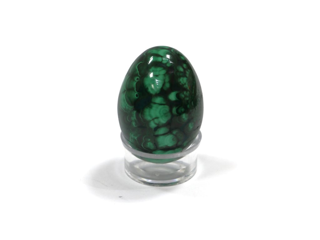 Malachitové vajíčko, bez podstavca, váha 100g, rozmery 4 cm x 3 cm. Krajina pôvodu Kongo. Kupujete priamo tento ks.