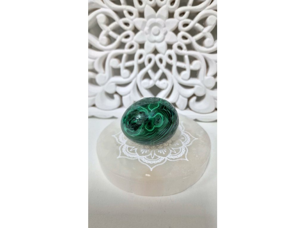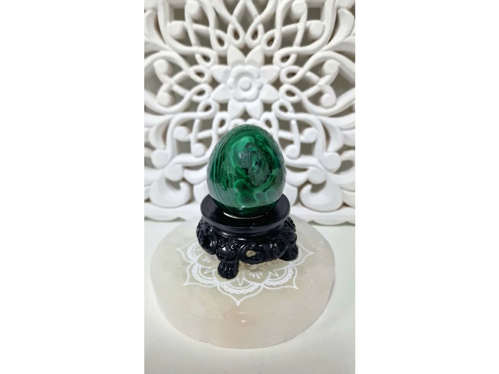 Malachitové vajíčko, bez podstavca, váha 175g, rozmery 5 cm x 4 cm. Krajina pôvodu Kongo. Kupujete priamo tento ks.