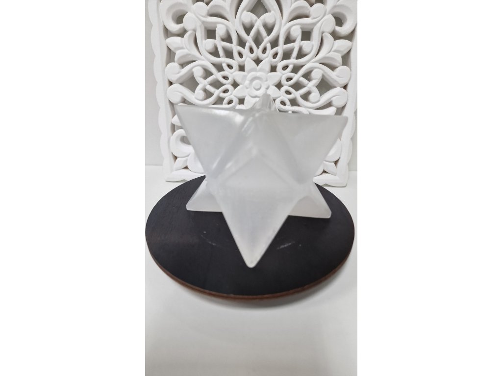 Selenitová merkaba 13 cm, váha cca 1,350 g. Krajina pôvodu Maroko.
