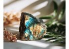 Modrý achátový plát, v strede s dierkou. Váha 155 g, rozmery 12,5 cm x 10 cm. Kupujete priamo tento ks, bez stojanu.