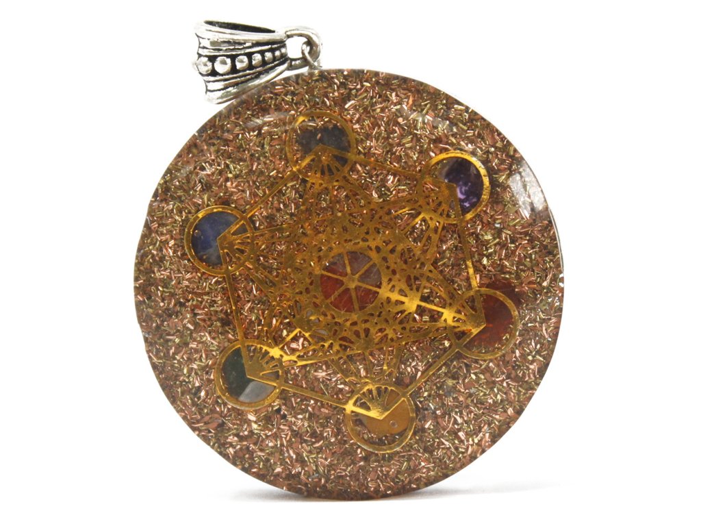 Orgonitový disk je vyrobený z kúskov drahokamov, medi, úlomkov kovu a minerálnych kameňov.